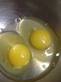 今回まず驚いたのが、卵を割った時の卵の黄身の色でした。
